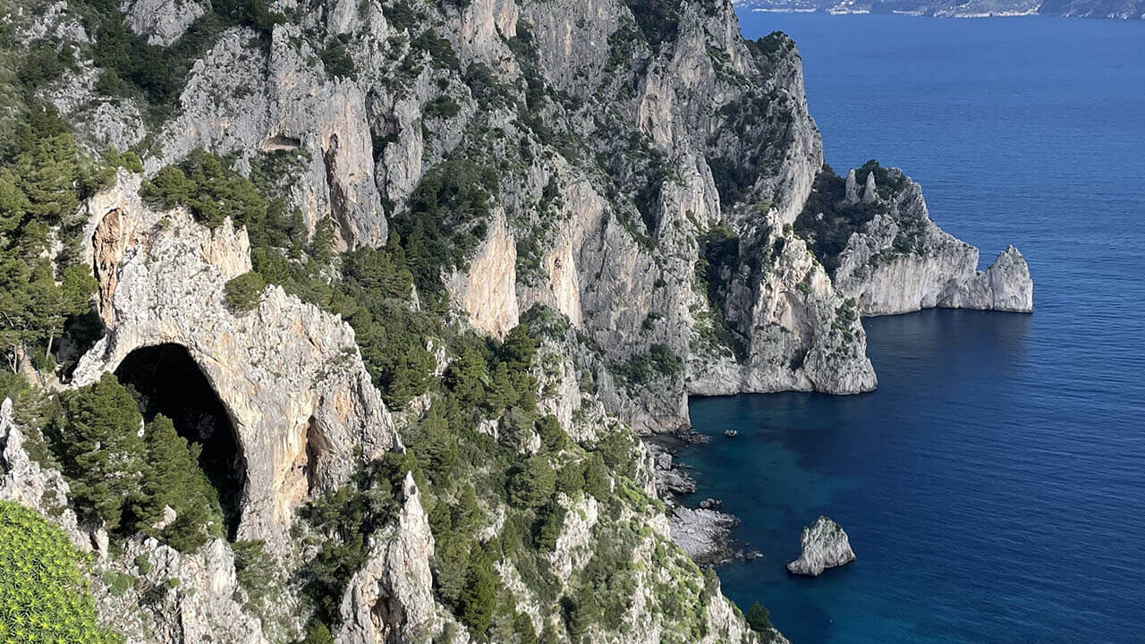Il nostro cammino ci condurrà poi al celebre Arco Naturale, un luogo che ha ispirato artisti e scrittori per secoli, attratti dalla magia di Capri. Continuando il percorso, scenderemo attraverso le storiche scale a zig-zag che portano alla Grotta di Matermania, un antico rifugio che racchiude misteri legati alla storia sacra dell’isola.