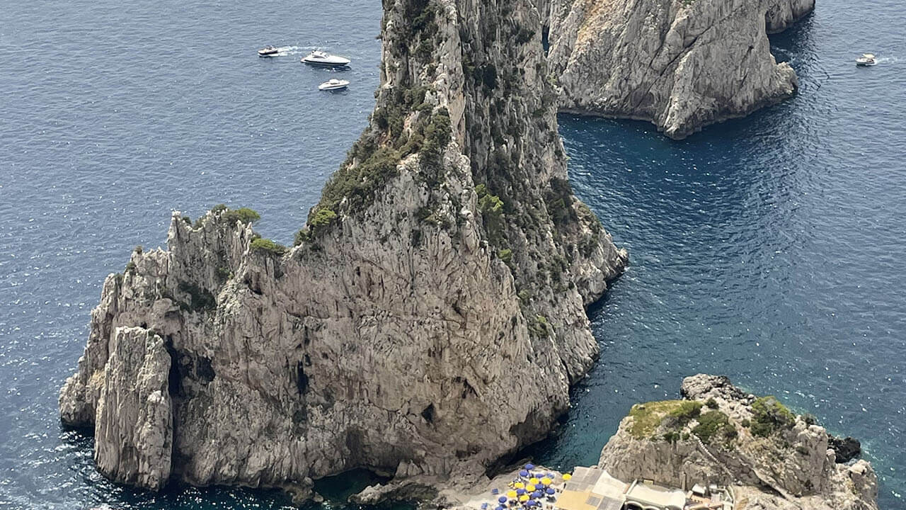 Da qui, percorreremo una comoda passeggiata che regala altri panorami mozzafiato, passando accanto a ville eleganti e godendo di nuove viste sui Faraglioni, simbolo di Capri. Rientreremo nel centro dell’isola, passeggiando tra i vicoli incantevoli e le prestigiose boutique.